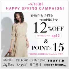 HAPPY SPRING CAMPAIGNスタート!! 7000円以上購入で12%OFF&ポイント15倍!新作も予約も対象♪