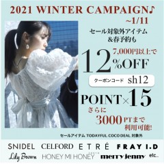 【 HAPPY WINTER CAMPAIGN START 】人気ブランドの 秋冬新作 & 予約 が8,000円以上購入で ★11%OFF&さらに3000ポイントまで利用可能★