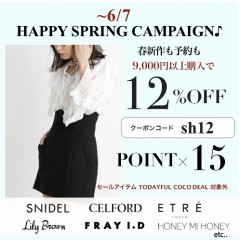 【 HAPPY SPRING CAMPAIGN 】人気ブランドの春の新作・夏予約が、なんと12%OFF&ポイント15倍でとってもお得♪