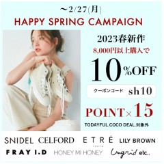 【 HAPPY SPRING CAMPAIGN 】人気ブランド春夏新作&予約も ★ 8,000円以上購入で10%OFF&ポイント15倍 ★~2/27(月)