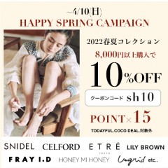 ☆ HAPPY SPRING CAMPAIGN スタート☆人気ブランドの春夏新作&予約が【8,000円以上購入で10%OFF&ポイント15倍 】