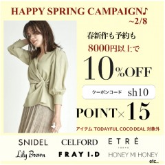 HAPPY SPRING CAMPAIGN♪SNIDEL.ETRE TOKYOなど春新作や予約アイテムが10%OFF&ポイント15倍!!