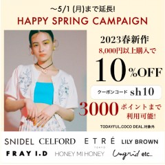 延長決定!!【 HAPPY SPRING CAMPAIGN START 】人気ブランド春新作&予約が ★ 8,000円以上購入で10%OFF&さらに3000ポイントまで利用可能 ★