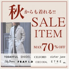 【MAX70%OFF】秋から使えるセールアイテム♪カテゴリー別にご紹介!!秋アウターやニットに注目♪