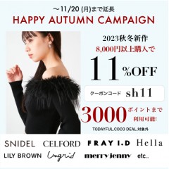 延長決定【HAPPY AUTUMN CAMPAIGN】人気ブランドの秋新作&予約が8000円以上購入で★11%OFF&さらに3000ポイントまで利用可能★~11/20(月)
