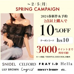 【 SPRING CAMPAIGN START 】人気ブランドの 冬新作 & 春予約 が 2点以上購入で ★ 10%OFF&さらに3000ポイントまで利用可能 ★
