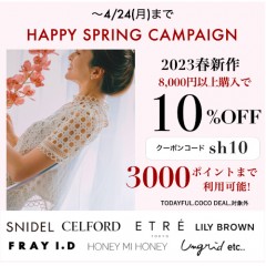 【 HAPPY SPRING CAMPAIGN START 】人気ブランド春新作&予約が ★ 8,000円以上購入で10%OFF&さらに3000ポイントまで利用可能 ★