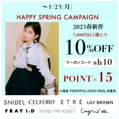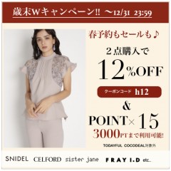 1/14まで延長決定!! 春アイテム対象のお得なWキャンペーン★10%OFF&ポイント15倍還元★SNIDEL.CELFORD.FRAY IDなど