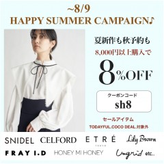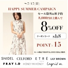 【 HAPPY SUMMER CAMPAIGN !! 】人気ブランドの 春夏新作 & 予約 が 7,000円以上購入で ★11%OFF&さらに3000ポイントまで利用可能★~7/29(月)