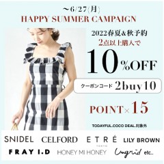 【 HAPPY SUMMER CAMPAIGN スタート 】22春夏コレクションが2点以上購入で★10%OFF&ポイント15倍★