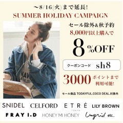 延長中!!【HAPPY SUMMER CAMPAIGN 】春夏コレクションも秋予約も ★8%OFF&3000ポイント利用可能★SNIDEL.CELFORDなど