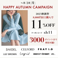 【 HAPPY AUTUMN CAMPAIGN START 】人気ブランドの秋新作&予約が8000円以上購入で★11%OFF&さらに3000ポイントまで利用可能★