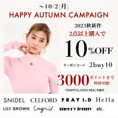 【 HAPPY AUTUMN CAMPAIGN 】人気ブランドの秋新作&予約が2点以上購入で ★10%OFF&3000ポイントまで利用可能★