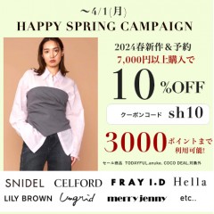 【 HAPPY AUTUMN CAMPAIGN スタート 】人気ブランドの 秋冬新作 & 予約 が8,000円以上購入で ★10%OFF&さらに3000ポイントまで利用可能★