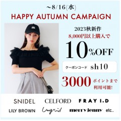 【 HAPPY AUTUMN CAMPAIGN 】人気ブランドの秋新作&予約が8000円以上購入で★10%OFF&3000ポイントまで利用可能★