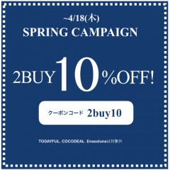 【2点以上お買い上げで10%OFF】人気ブランドの新作や先行予約アイテムが続々登場♥春のお買い物キャンペーン!!