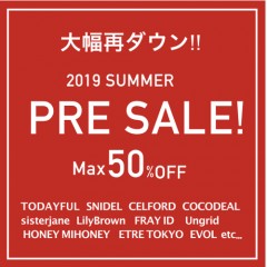 【速報】夏プレセールアイテム大幅ダウン! Max50%OFF♪SNIDEL.CELFORD,LilyBrown,FRAY.ID,ETREなど約600アイテム♪