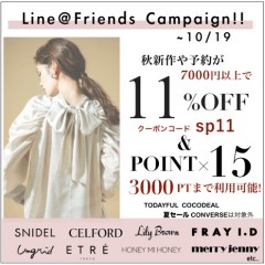 【Line@Friendキャンペーン】スタート♪11%OFF&ポイントもザクザク貯まって使える!解禁したばかりのSNIDELやFRAY I.Dの冬アイテムもお得にお買い物★