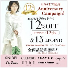 【11/16まで延長中!!】☆おかげさまで12周年☆ご愛顧に感謝して周年キャンペーン!!秋冬新作もなんと12%OFF&15倍POINT!さらに全商品送料無料♪