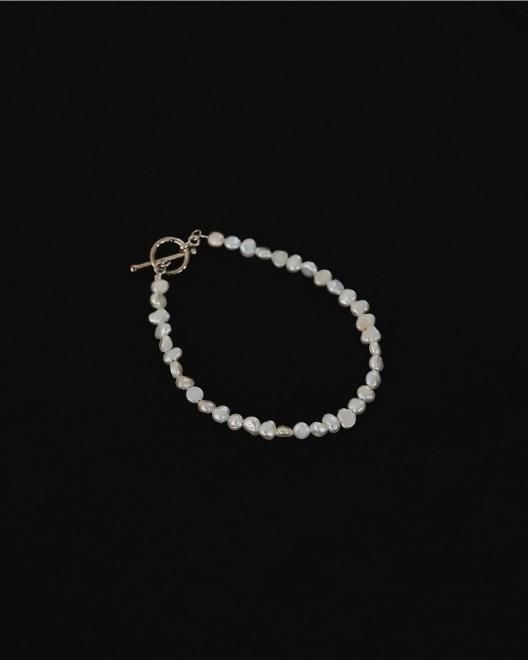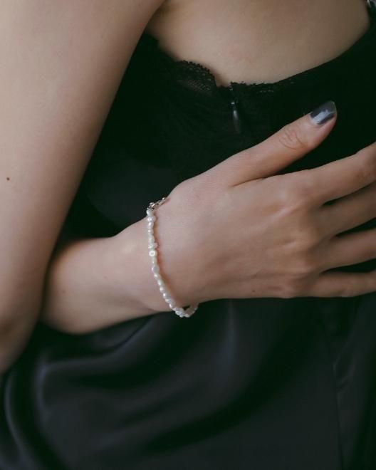 小粒の淡水パールで仕立てた一連ブレスレット。天然の不揃いな形が魅力のバロックパールを使用し、カジュアルさもある仕上がりがポイントです。シルバーやゴールドの華奢なブレスレットと重ね付けするのもおすすめです。淡水パールは天然のものなので、ひとつひとつ形が異なります。