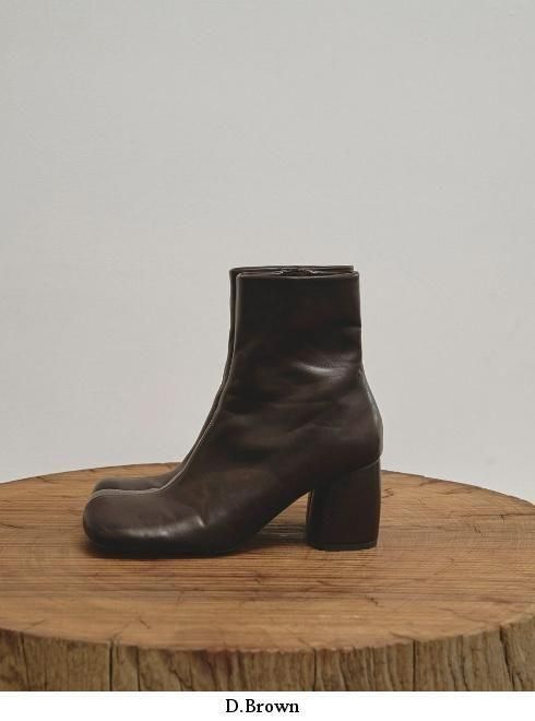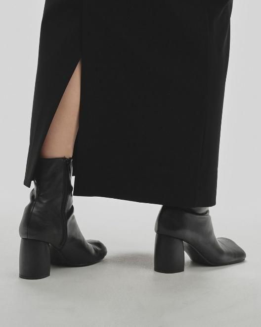ぽってりとしたスクエアトゥが魅力のショートブーツ。無駄のないミニマルなデザインで、幅広いスタイリングに馴染みます。