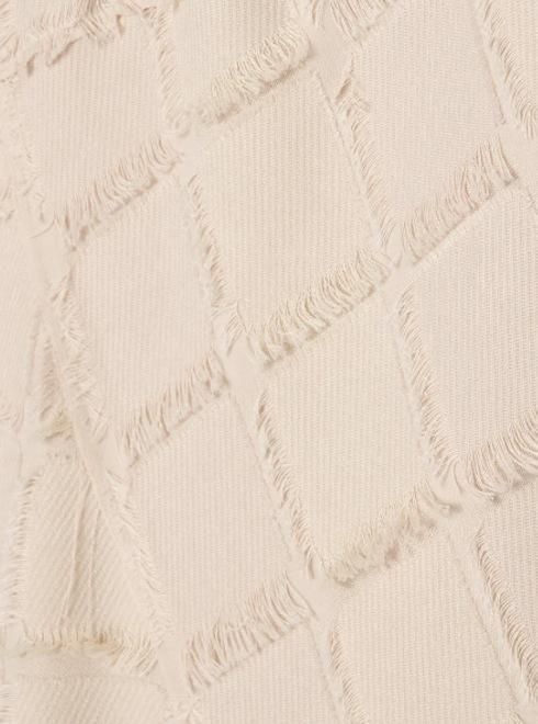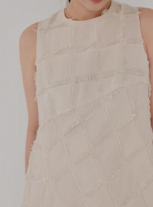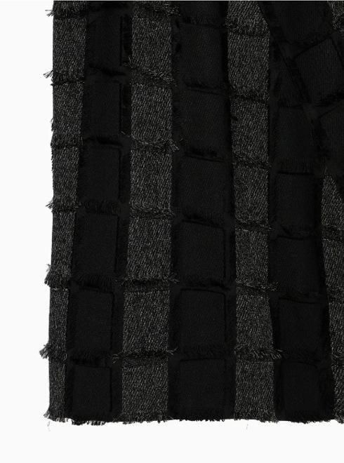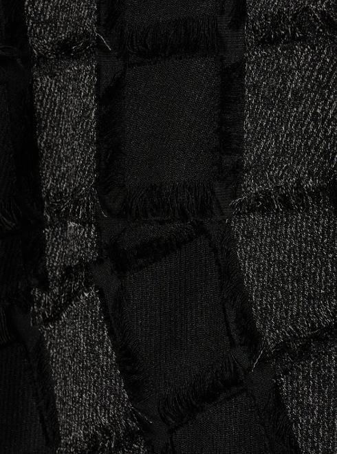 パッチワークデザインが印象的で、立体感と奥行きを感じさせるテクスチャーが魅力な一着。