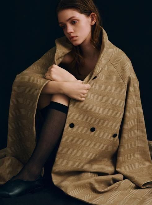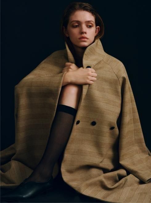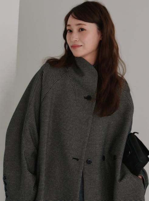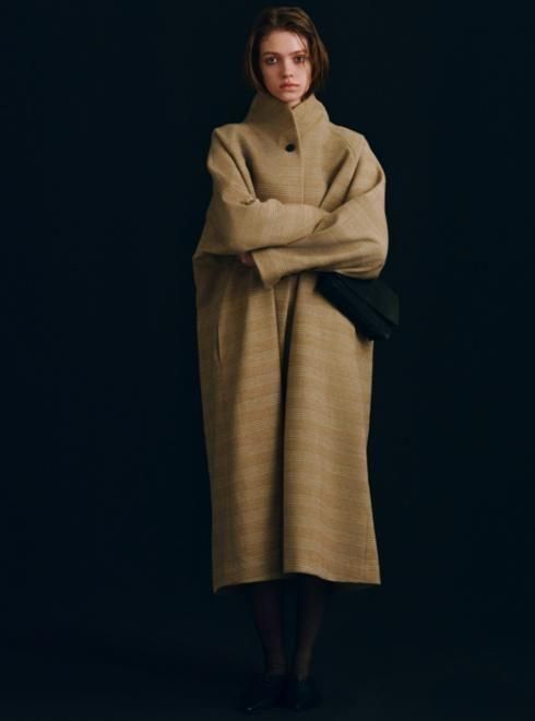 ゆったりとしたシルエットと高めのスタンドカラーが洗練された印象を与え、