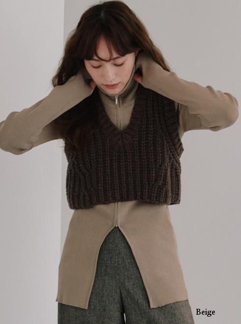 zip up rib knit 25秋冬【h253-95】ニットトップス