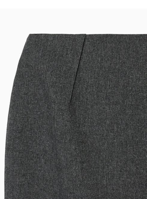 立体的なフロントダーツと表出しのディテールが印象的なメランジタイトスカート。