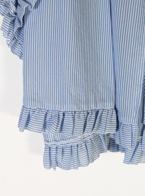 涼やかでエアリーな着心地で、動くたびに軽やかに揺れるフリルが華やか。シンプルなコーディネートを華やかに着飾ります。フロントの2本の細いリボンを結んでご着用いただけます。