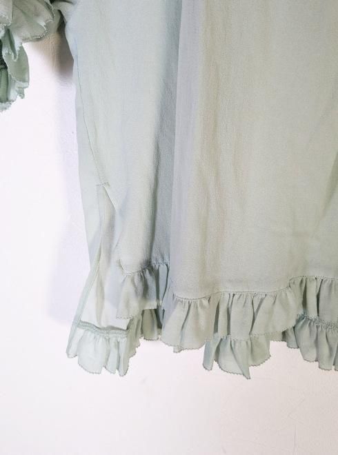 シアー感のある柔らかな生地で、ギャザーとフリルをたっぷりと取り入れてお作りした、ドラマティックなオーバーサイズのボリュームフリルブラウスです。