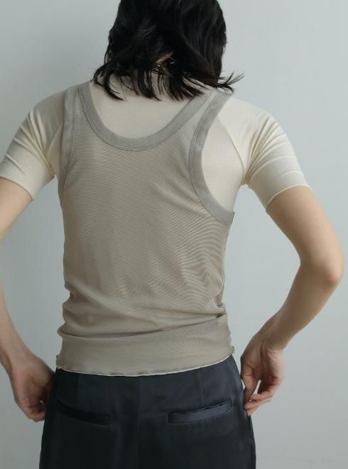 肌触りの良い柔らかなカットソー素材でお作りしたコンパクトTシャツ。薄手でほんのりと透け感のある素材で、ニュアンスある一枚。