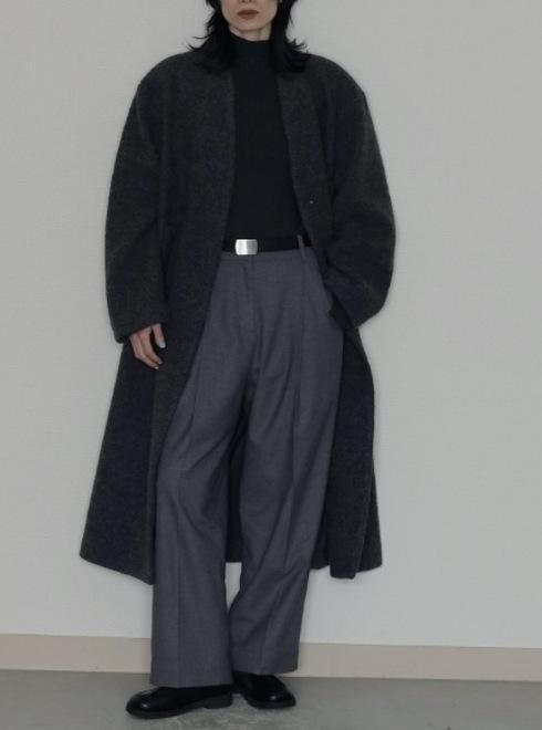 リボンストール付きノーカラーコート 25秋冬.【CWFC255054】ウールコート -