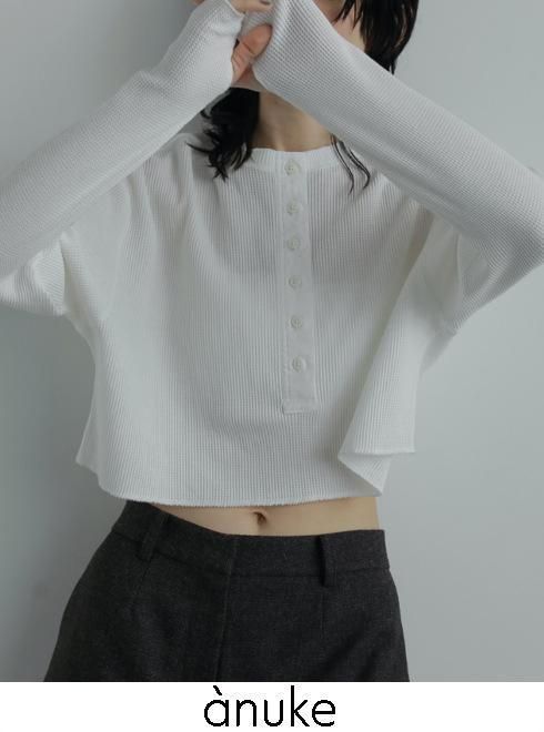 Waffle Henley Tops★ 25秋冬【62520628】カットソー 秋冬受注会