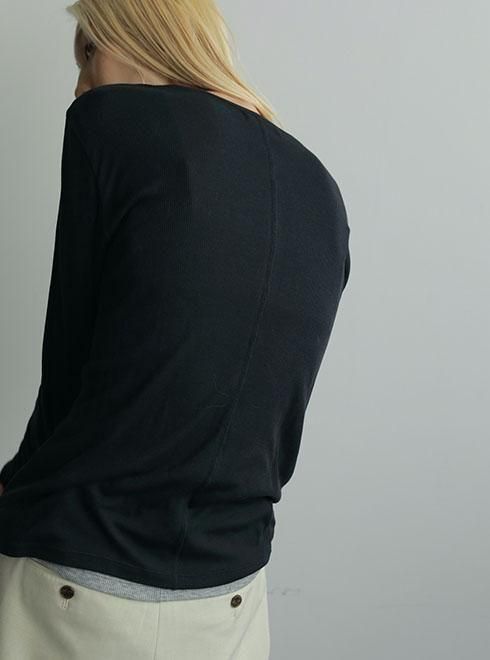 主張し過ぎず程良くニュアンスを出してくれる細かなリブ目で、幅広いアイテムと合わせやすい一枚。柔らかな着心地も魅力。
