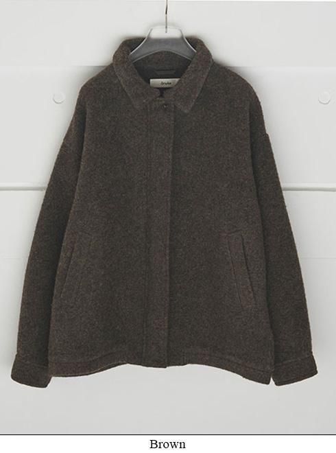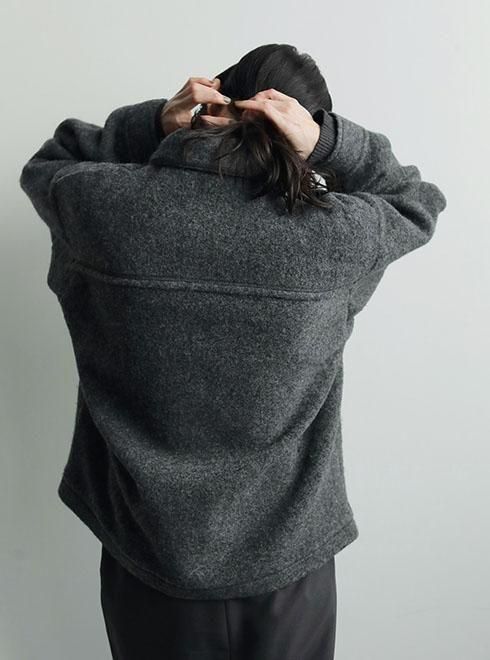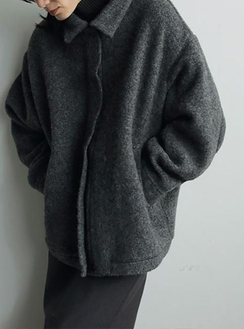 スライバー素材で仕上げたZIPブルゾン。柔らかくふくらみのある暖かな素材で、メンズライクに着れるシンプルなデザイン。