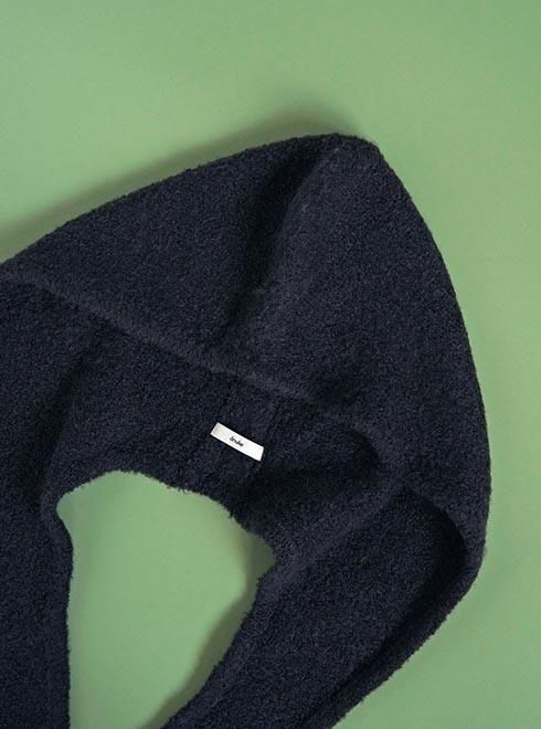 柔らかなループヤーンで、もこもことした立体的な編み地で仕上げたニットフーディー。