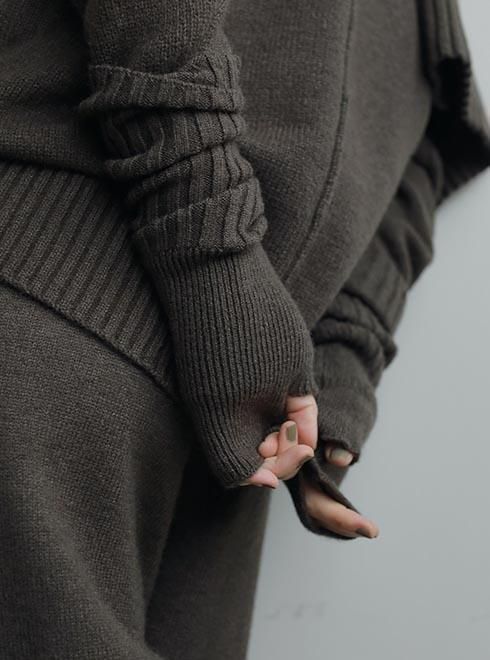 ワイドリブと、手に当たる部分はフラットな編み地で仕上げています。