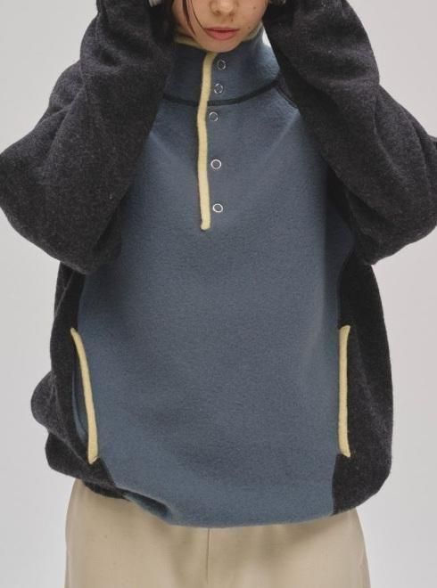 胸元まであしらわれたリングスナップボタンに加え、ボディと、フロントやポケット口に配したパイピングを組み合わせた、絶妙な配色バランスがさりげない個性を演出。ディテールまで丁寧に仕上げられており、シンプルながらもスタイリングに程よいアクセントを加えてくれます。