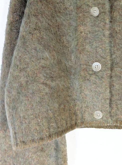 上質なモヘア混糸で編み上げたニットカーディガン。起毛感のあるブラッシュド加工を施すことで、ふんわりとした質感と暖かな肌ざわりに仕上げました。