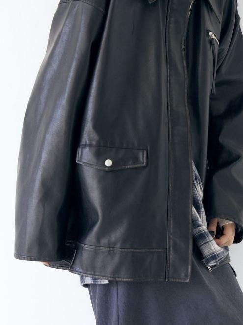 フェイクレザーに洗い加工を施し柔らかな着心地です。