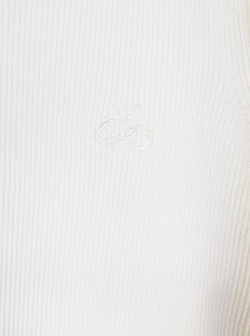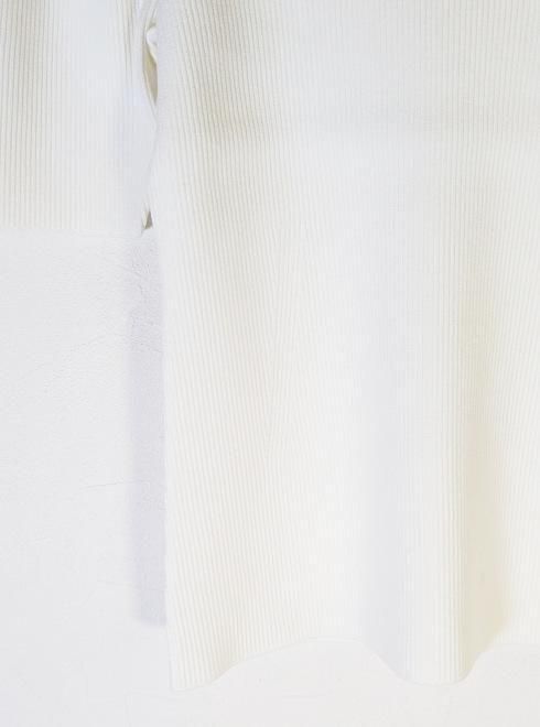 伸縮性のあるリブ編みで程良く体にフィットし、ウエストも自然にシェイプさせトップスインもしやすいシルエットに。
