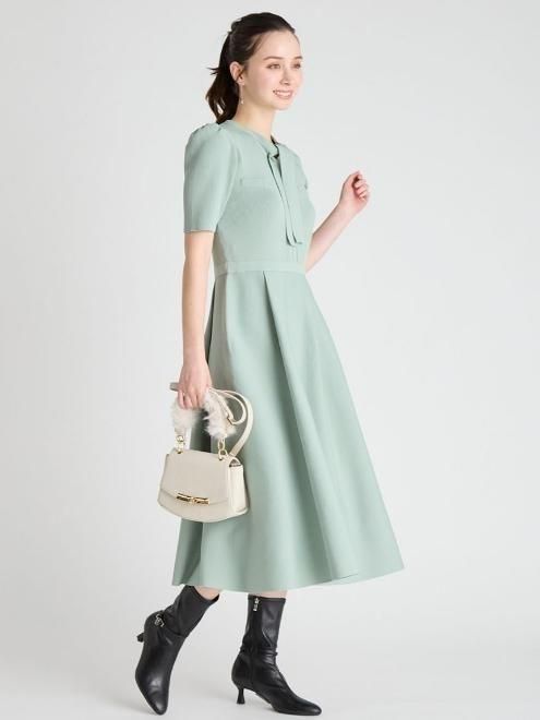 ボウタイトリムニットセットアップ 25秋冬.【RWNO255038】フレアワンピース -