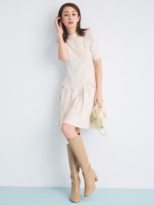 アイボリーベースのチェック柄は、女性らしい優しさと上品さを引き立ててくれます。