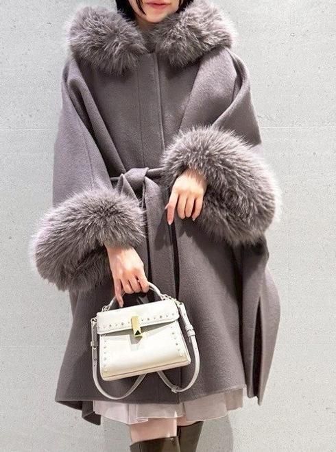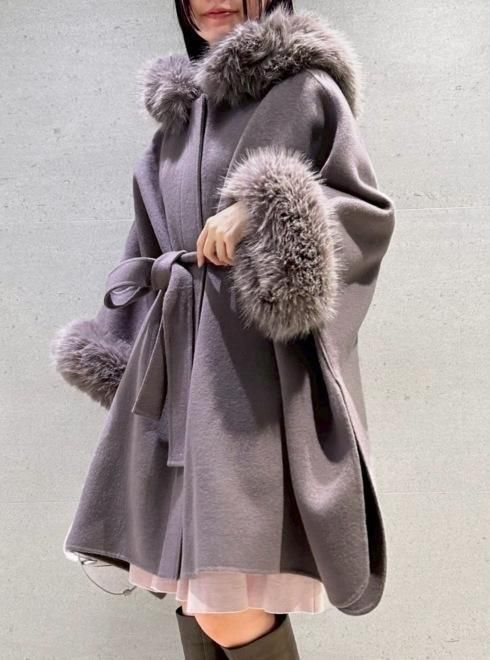 ファーポンチョコート 25秋冬【CWFC255006】ウールコート