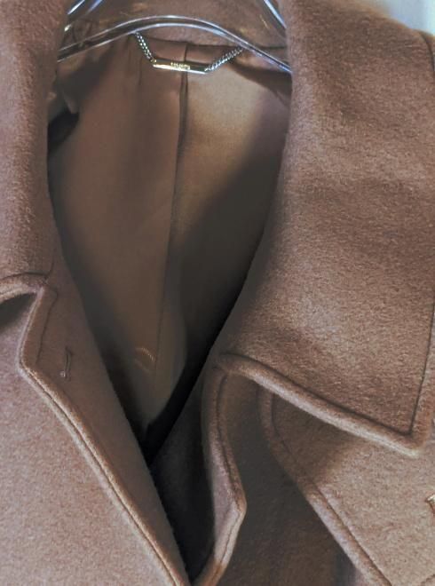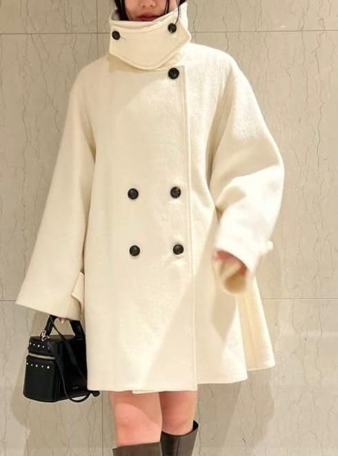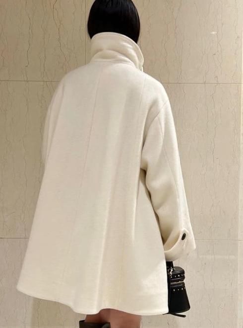 高めの襟はチンウォーマーが付いており、襟を立ち上げたままのスタイルもより一層エレガントさを引き立てます。