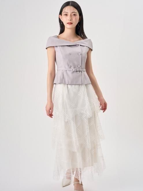 3段ティアードのフレアーシルエットは裾をヘムラインにし控えめながらも動きのある表情に。