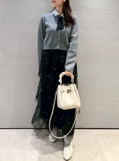 ボウタイトリムニットセットアップ 25秋冬.【RWNO255038】フレアワンピース -