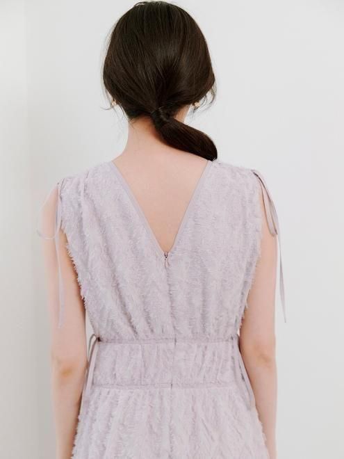 ふんわりフェミニンに、毛足を出したダイア柄のジャガード生地がスペシャル感のある上品なジャガードドロストディテールノースリワンピがお目見え。