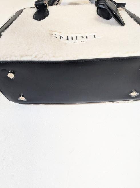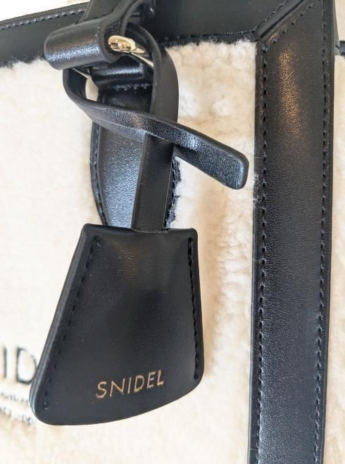 温かみのあるボア素材に、ハンドルやパイピング部分にはレザー調素材を組み合わせた異素材ミックスが特徴です。フロントのSNIDELロゴ刺繍が高級感を演出します。